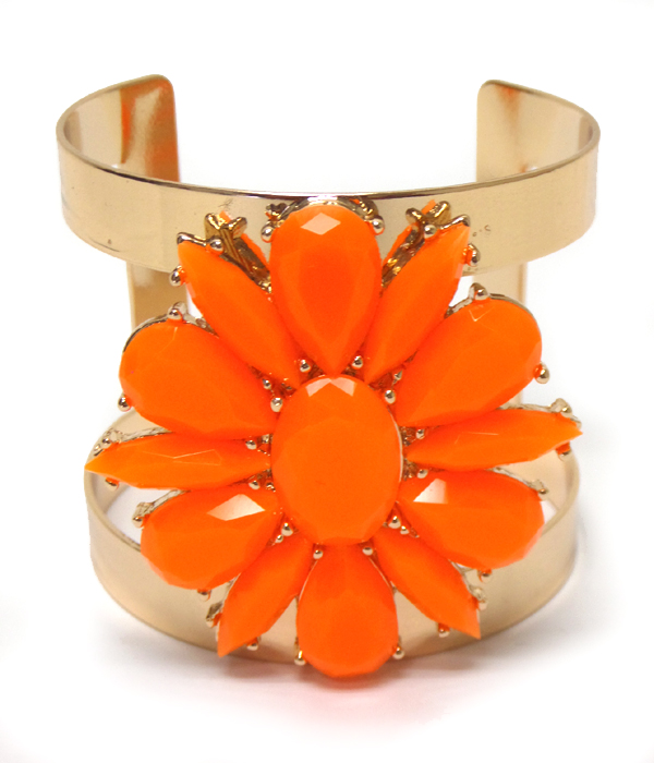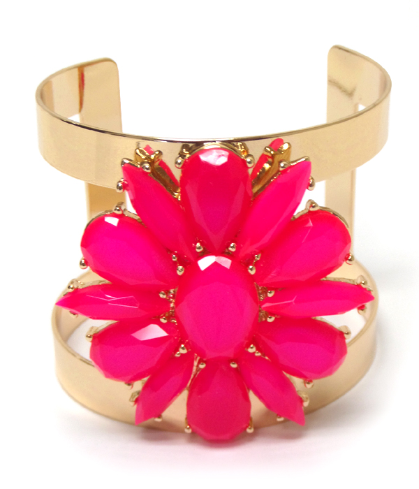 WHOLESALE NEON LARGE FLOWER METAL CUFF BRACELET 413009