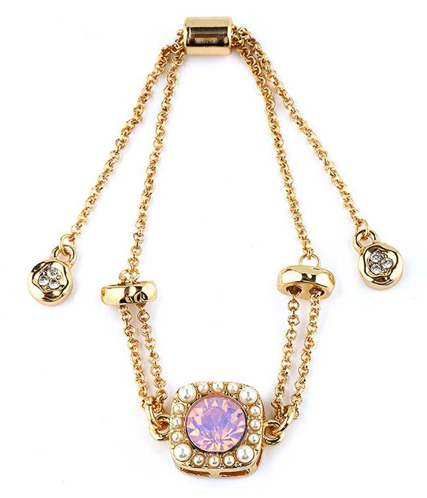 Crystal and pearl pendant adjustable chain bracelet