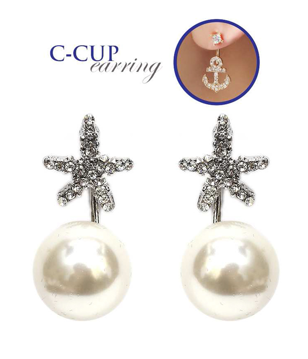 WHOLESALE CRYSTAL STARFISH AND PEARL DOUBLE SIDED FRONT AND BACK EARRING - C CUP 413206