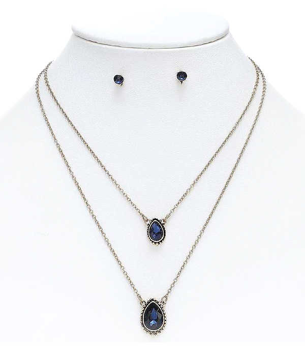WHOLESALE TEARDROP GLASS DOUBLE LAYER NECKLACE SET 413211