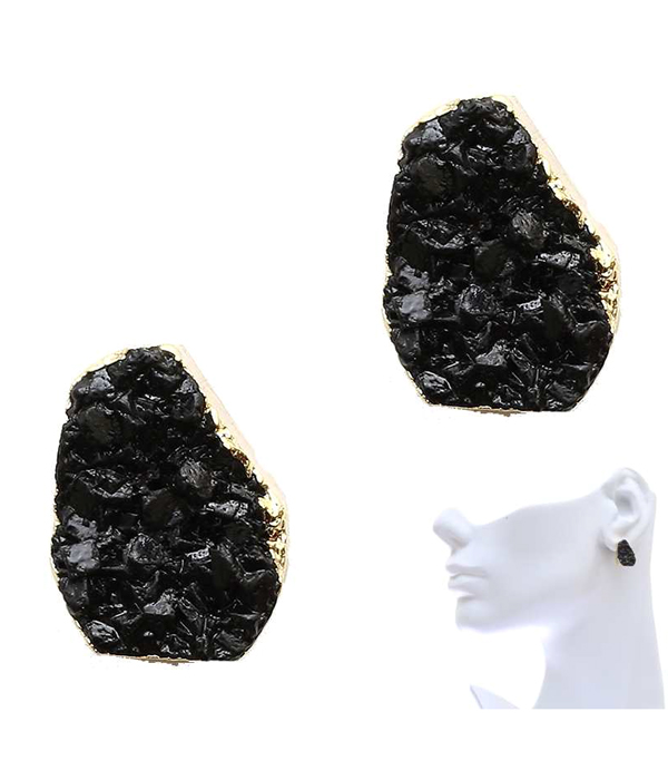 WHOLESALE NATURAL SHAPE DRUZY AND SIDE GOLD PLATED STUD EARRING 413233