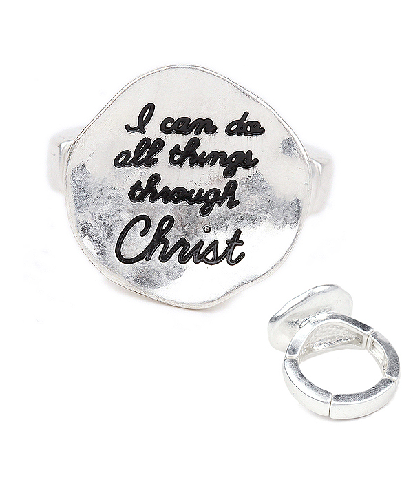 WHOLESALE HANDMADE METAL DISK STRETCH RING - I CAN TO ALL THINGS THROUGH CHRIST 413306