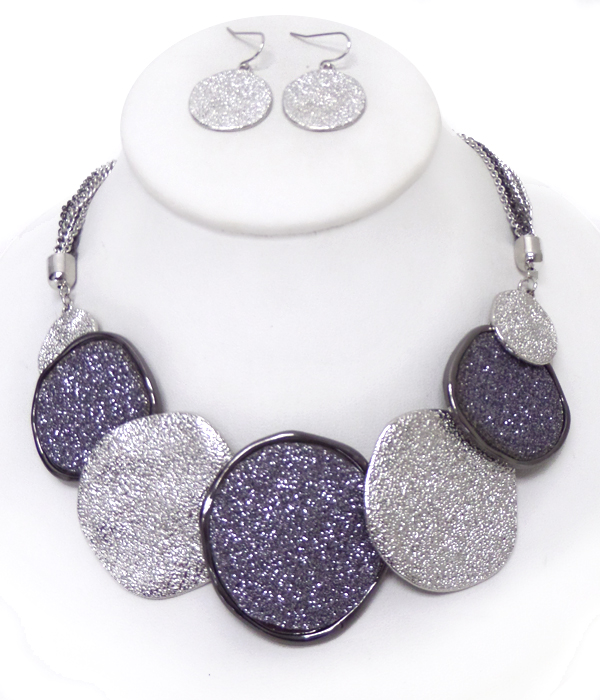 WHOLESALE ROUND LINKED DISKS WITH CHAIN STATEMENT NECKLACE SET 413418