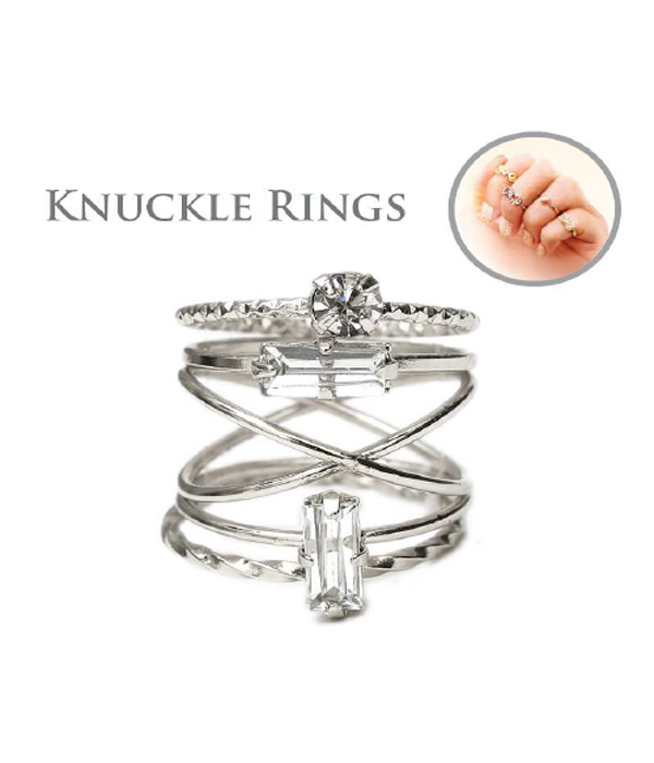 Crystal multi stackable knuckle ring combo set