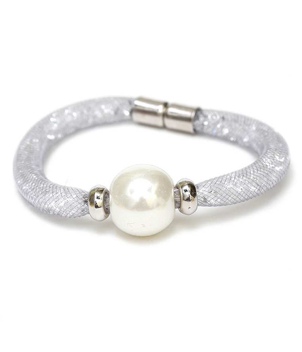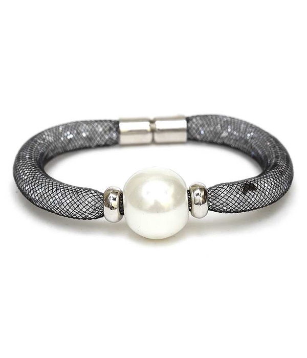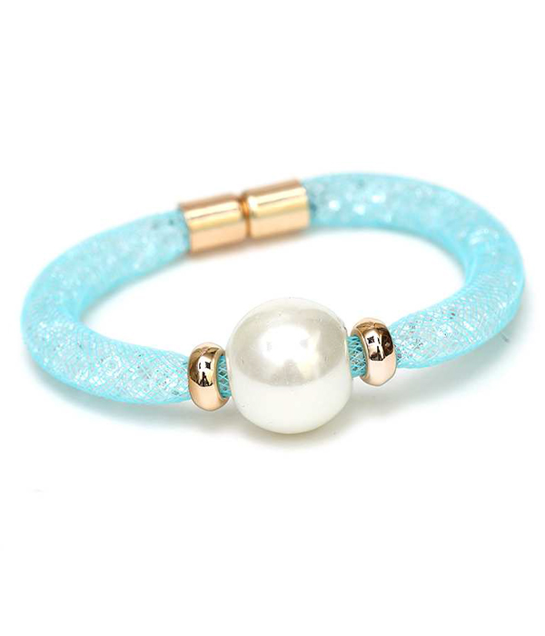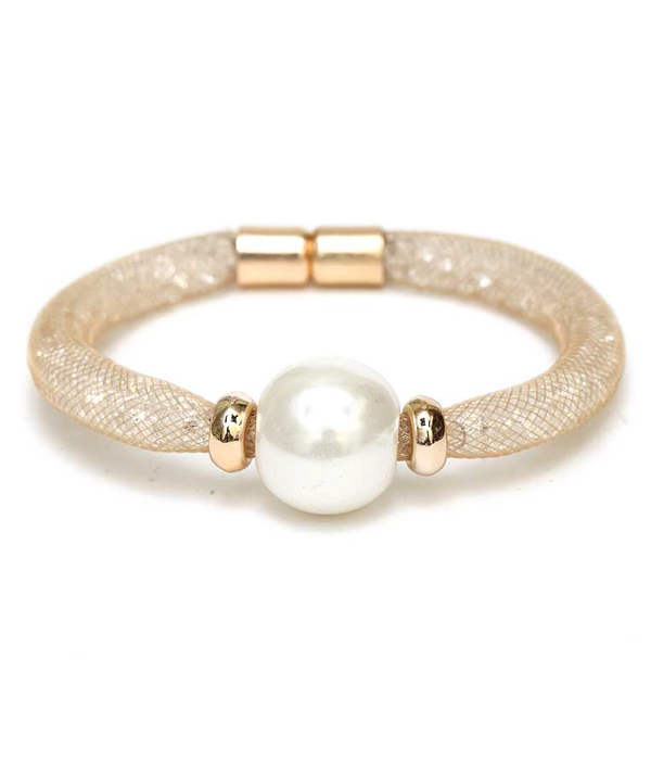WHOLESALE PEARL ACCENT FISH NET TUBE BAND AND STONE BRACELET 413792
