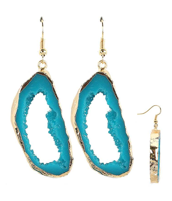 WHOLESALE NATURAL SHAPE SIDE GOLD PLATED DRUZY EARRING 413796