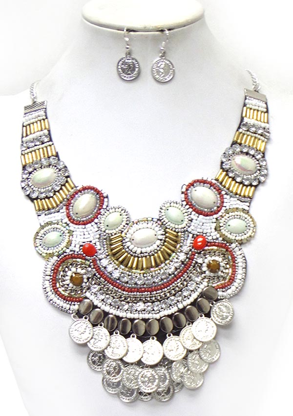 WHOLESALE BOHEMIAN STYLE MULTI BEADED DROP COINS NECKLACE SET 413882