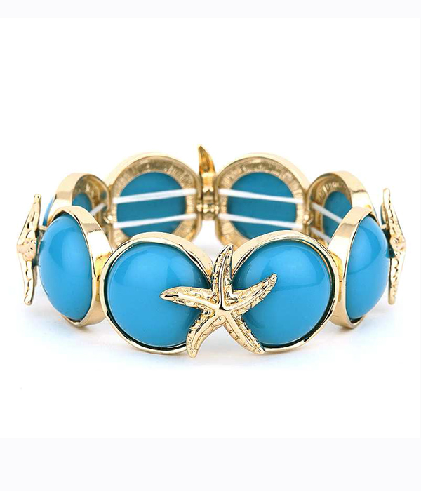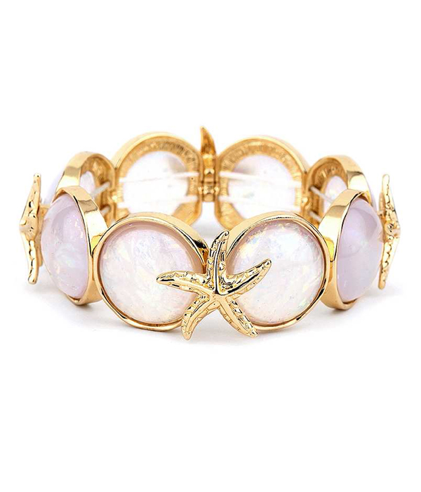 WHOLESALE STARFISH AND ABALONE FINISH PUFFY STONE STRETCH BRACELET 413983