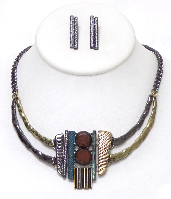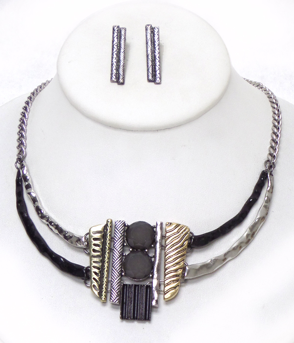 2 layer multi metal shapes necklace set