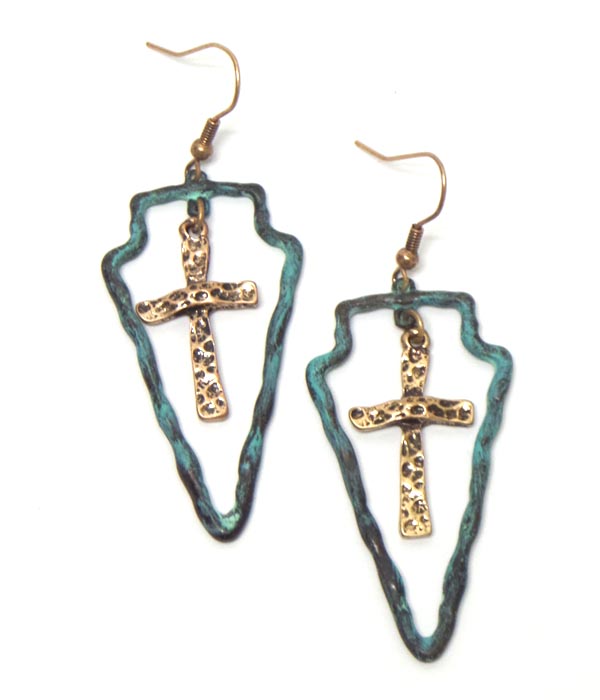 WHOLESALE RUSTIC SHAPE CROSS DROP HOOK EARRINGS 414307
