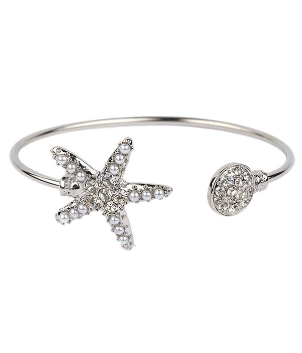 WHOLESALE CRYSTAL AND PEARL STARFISH WIRE BANGLE BRACELET 414356