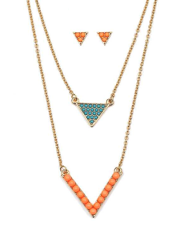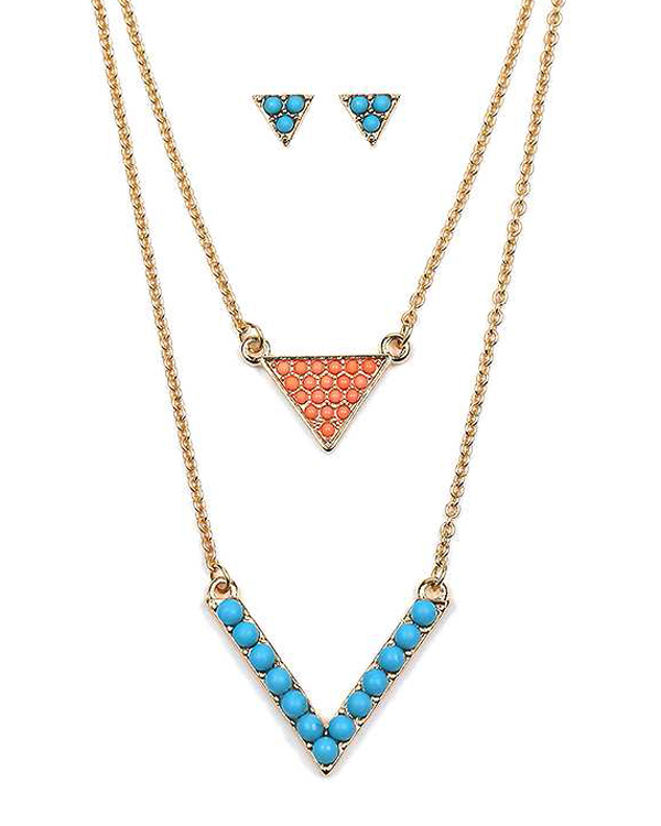 Turquoise chevron and triangle double layer necklace set