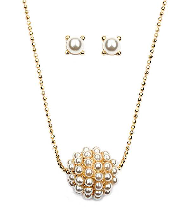WHOLESALE PEARL BALL NECKLACE SET 414458