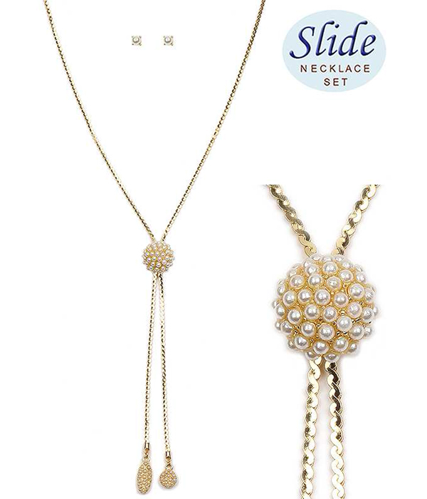 WHOLESALE PEARL BALL SLIDE LARIAT NECKLACE SET 414464
