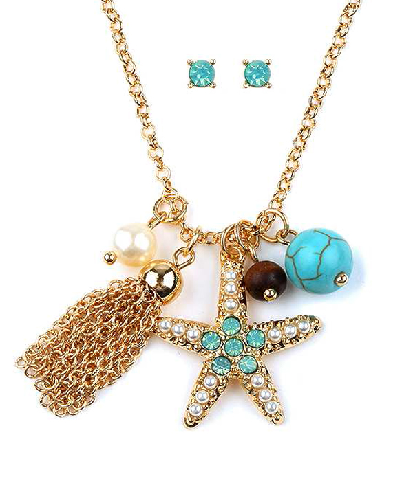 WHOLESALE CRYSTAL STARFISH AND TASSEL NECKLACE SET 414495