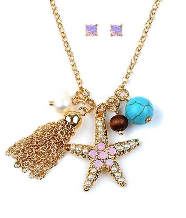 Crystal starfish and tassel necklace set