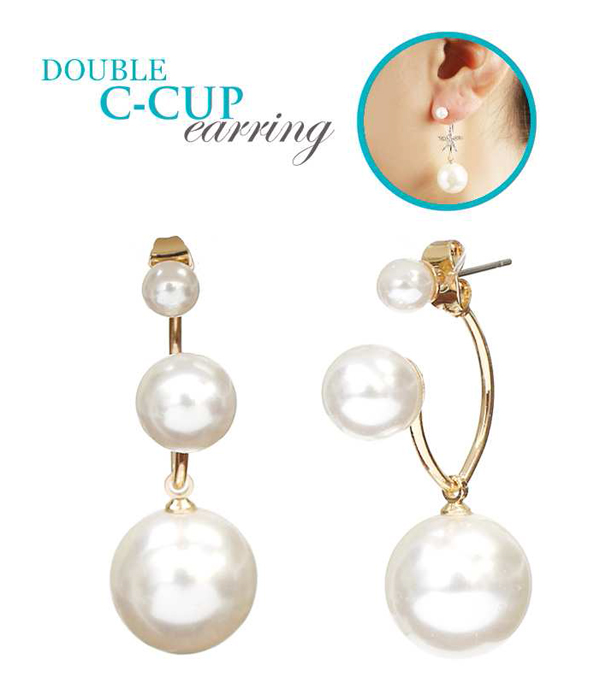 WHOLESALE PEARL DROP DOUBLE SIDED FRONT AND BACK EARRING - C CUP 414572
