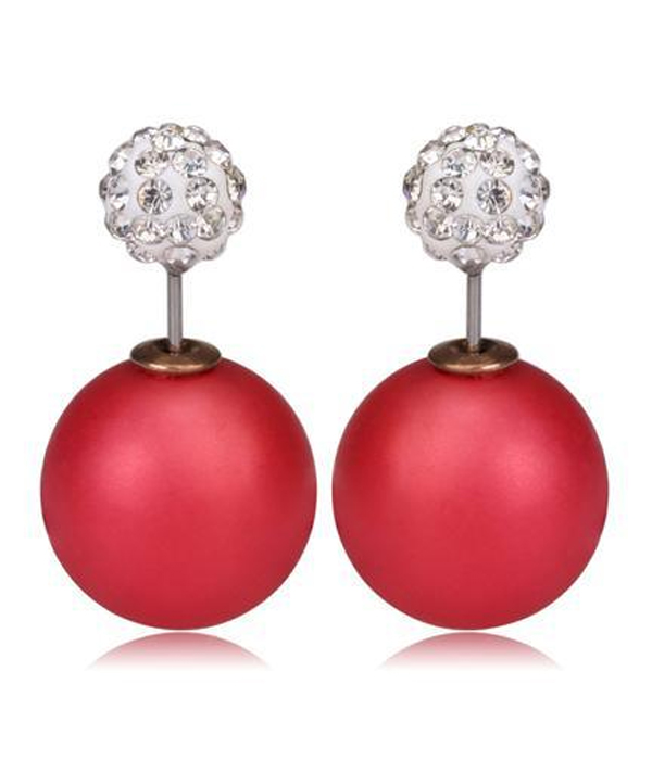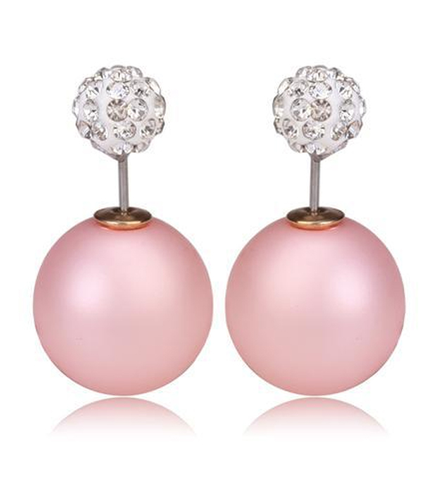 WHOLESALE CRYSTAL CLAY BALL AND PEARL DOUBLE SIDED FRONT AND BACK EARRING 414666