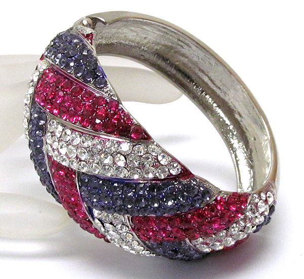 WHOLESALE CRYSTAL PAVE BRAIDED PUFFY HINGE BANGLE BRACELET 414680