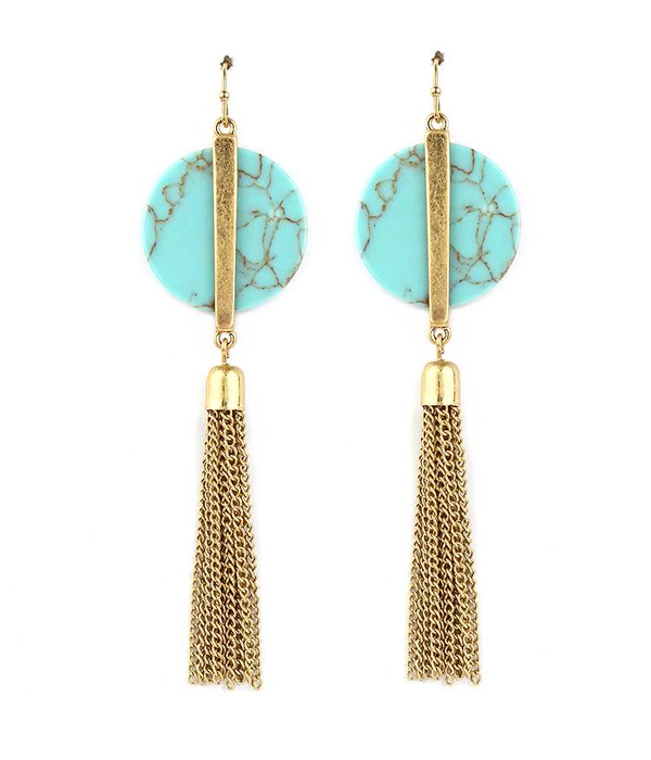 WHOLESALE DISK STONE AND METAL TASSEL DROP EARRING 414737