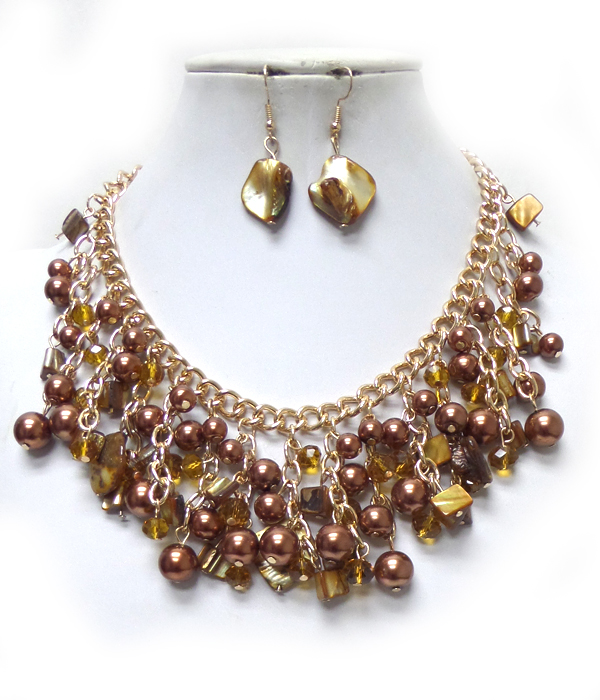 WHOLESALE MULTI PEARL AND SHELL CHIP DROP NECKLACE SET 414929