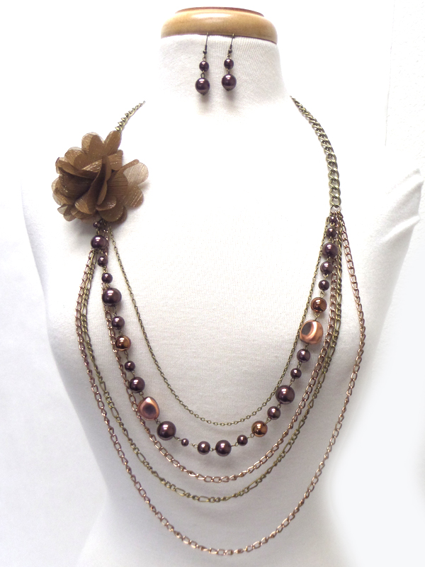 WHOLESALE LAYER PEARL CHAIN FLOWER NECKLACE SET 415115