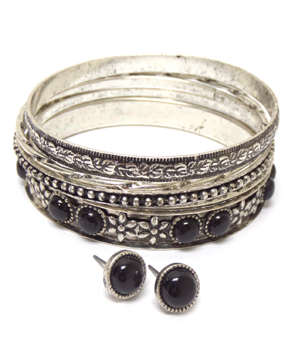 Multi designs metal burnish silver bracelet earring set