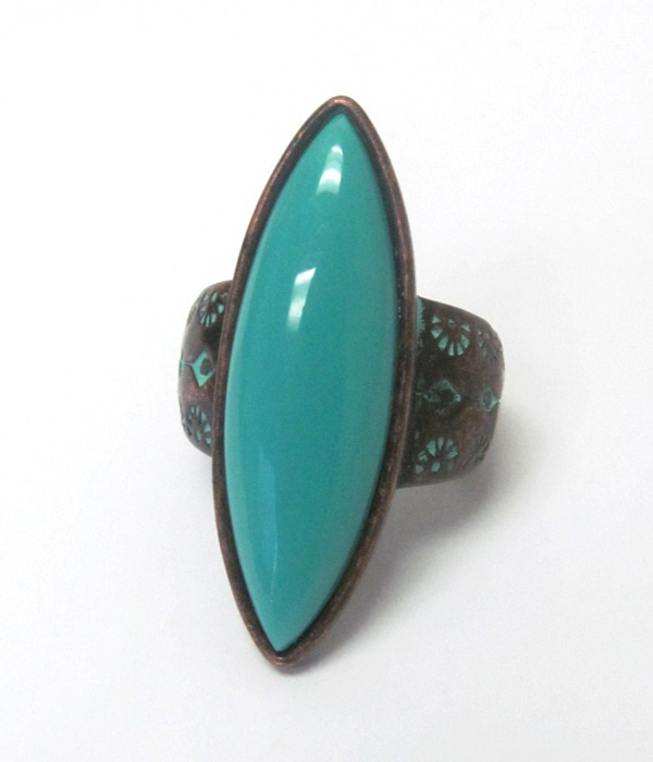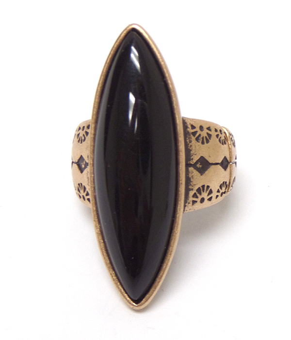 WHOLESALE THIN SHAPE STONE METAL TEXTURED RING 415394