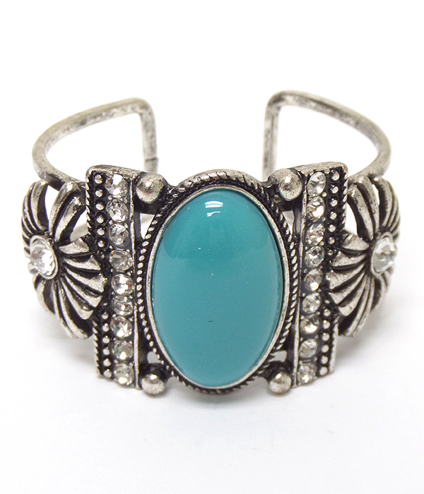 WHOLESALE METAL TEXTURED FLOWERS CUFF STONE BRACELET 415395