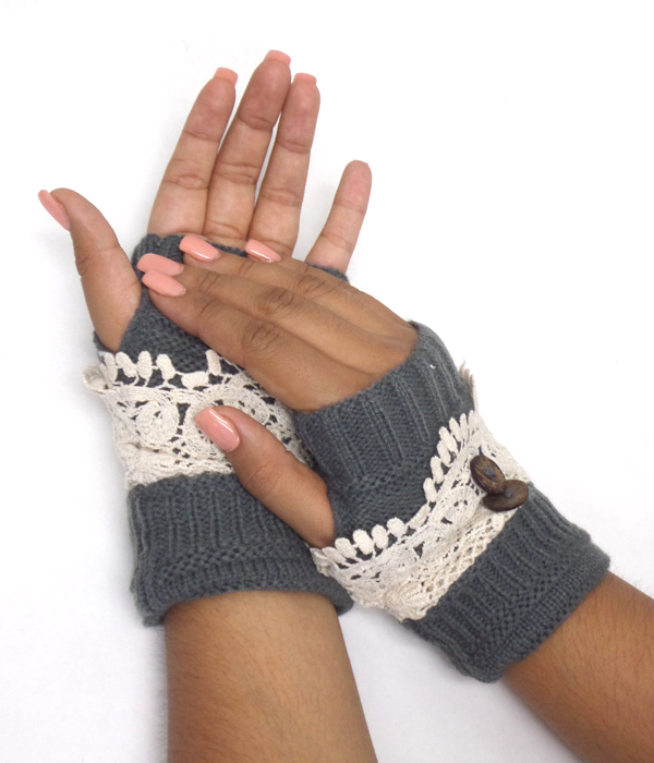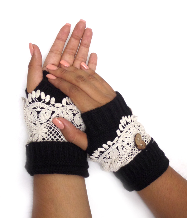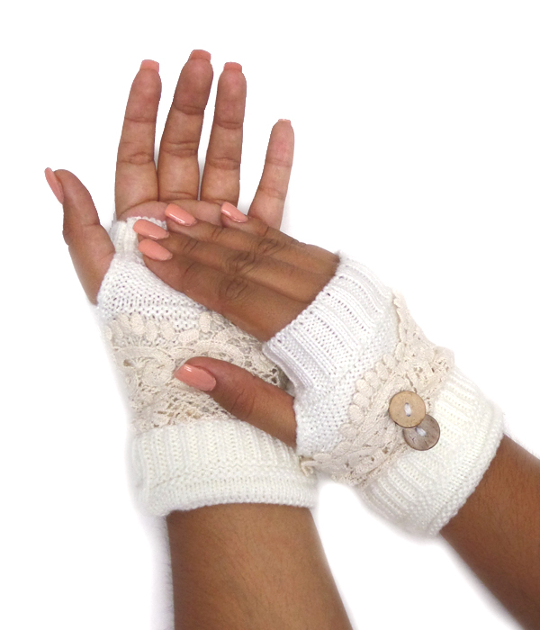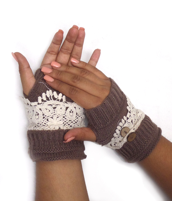 WHOLESALE DOUBLE BUTTON AND LACE OPEN FINGER CROCHET GLOVES 415549