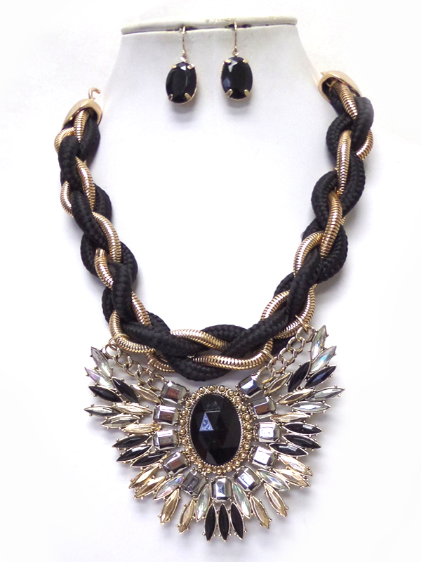 WHOLESALE TWISTED ROPE AND CHAIN MULTI CRYSTALS DROP NECKLACE SET 415599