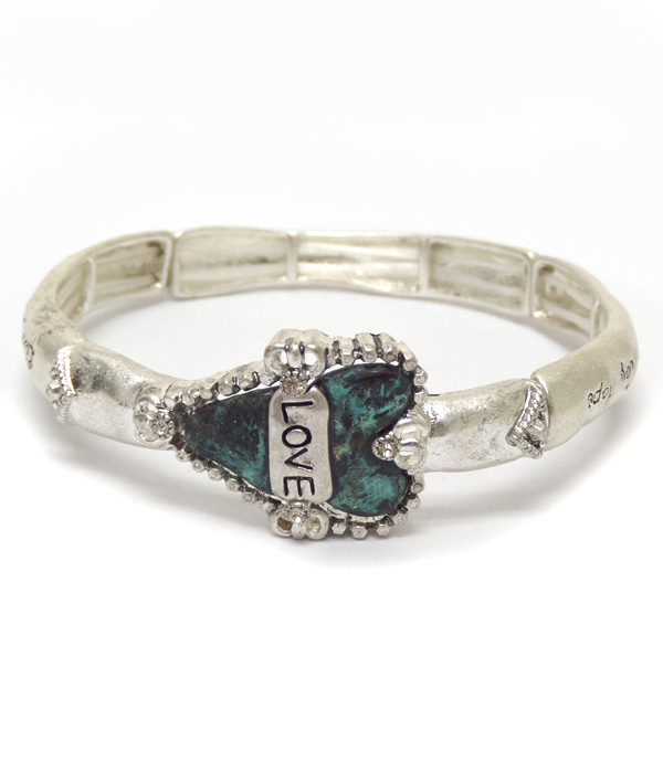 Religious theme love heart stretch bracelet - live love laugh joy hope