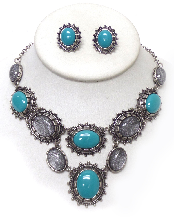 WHOLESALE BURNISH METAL AND STONE NECKLACE SET 415810