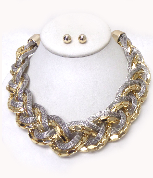 WHOLESALE BRAIDED MIXED TUBE METAL CHAIN NECKLACE SET 416064