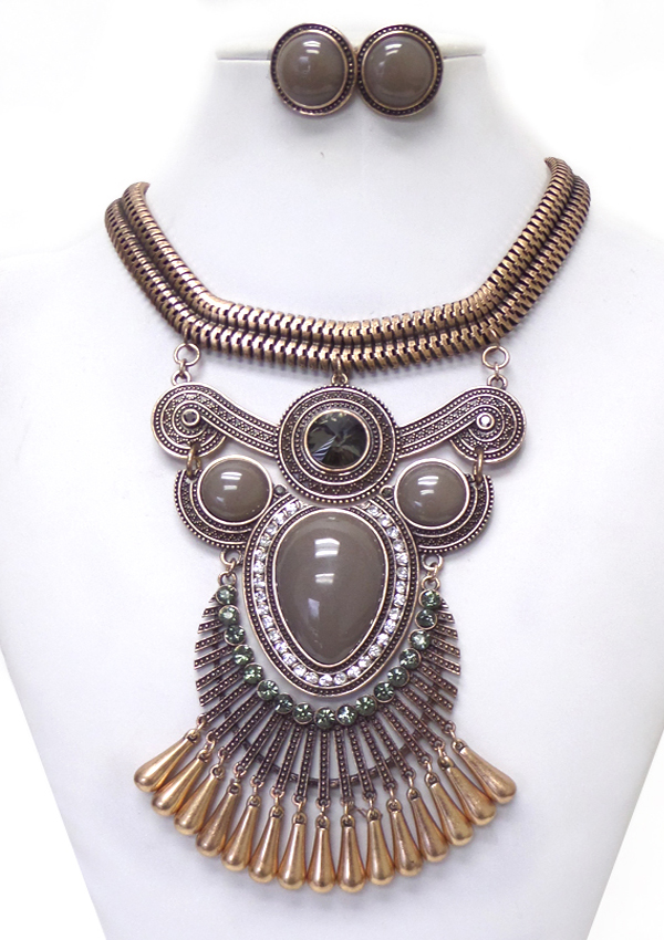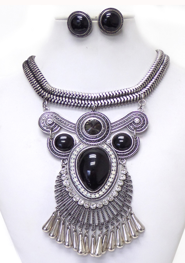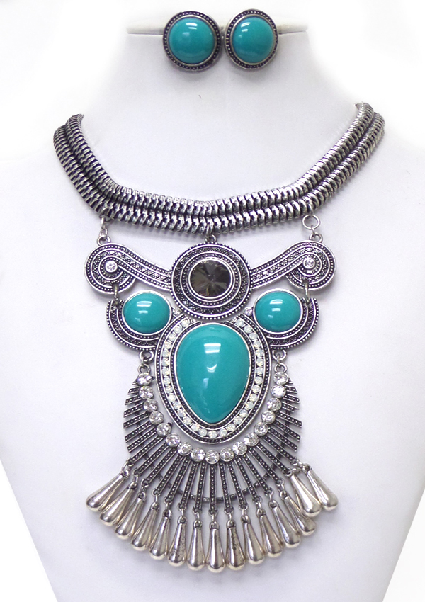 WHOLESALE LUXURY CLASS CRYSTAL AND MIXED STONE STATEMENT NECKLACE SET 416158