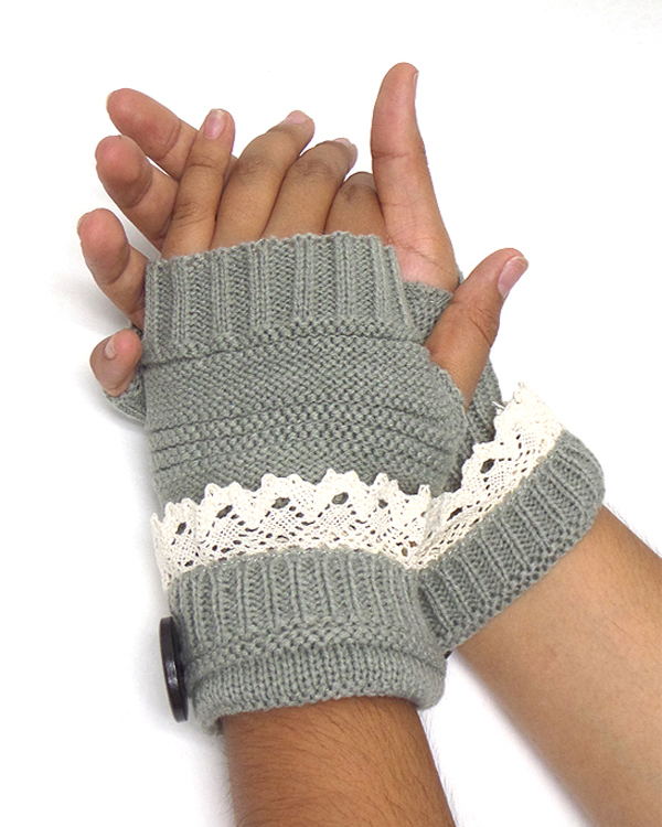 WHOLESALE TWO BUTTON AND LACE OPEN FINGER CROCHET GLOVES 416178