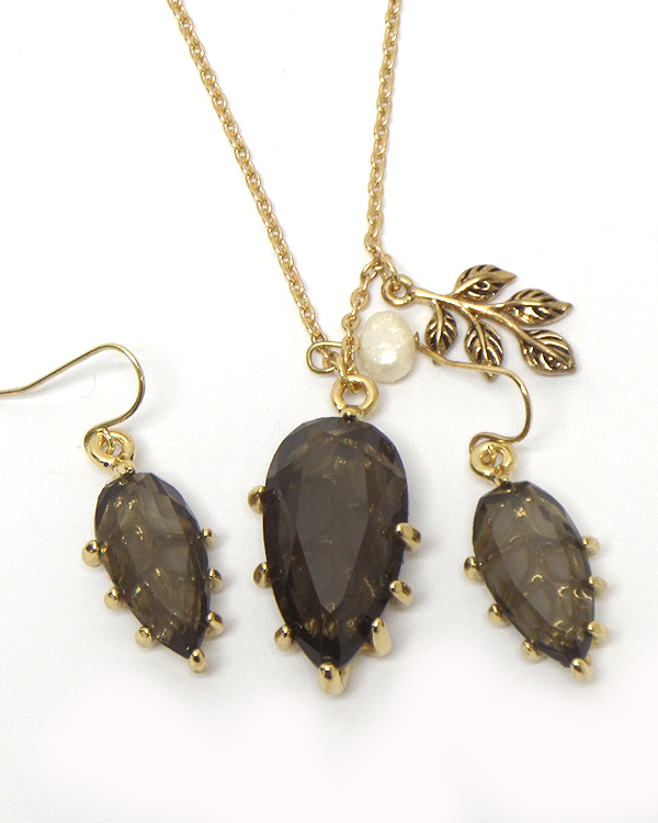 Glass leaf charm necklace earring set