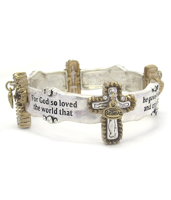 WHOLESALE RELIGIOUS INSPIRATION CROSS MESSAGE STRETCH BRACELET - JOHN 3:16 416712