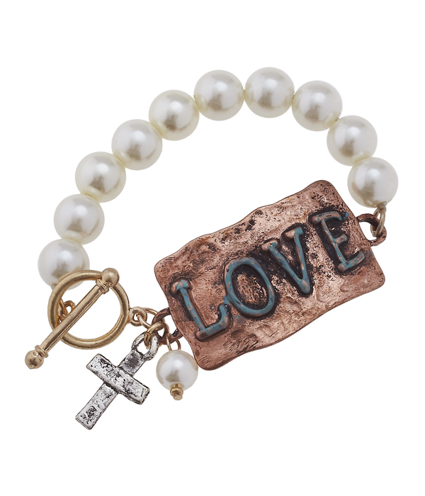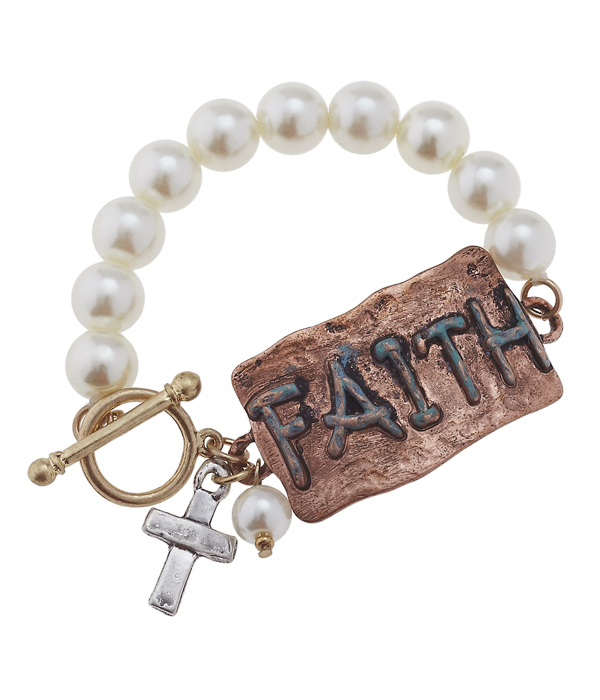 WHOLESALE HANDMADE PLATE AND PEARL TOGGLE BRACELET - BLESSED 416722