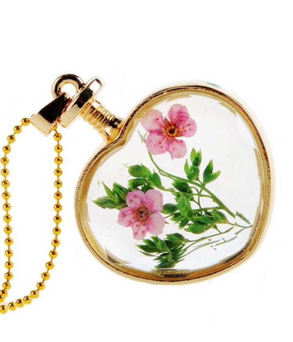 Vintage floating flower glass pendant necklace