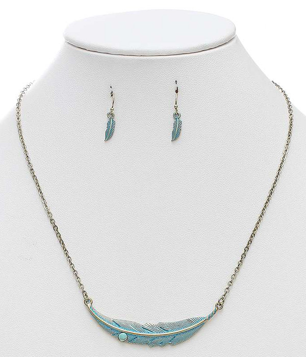 Feather pendant necklace set