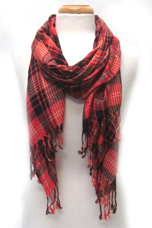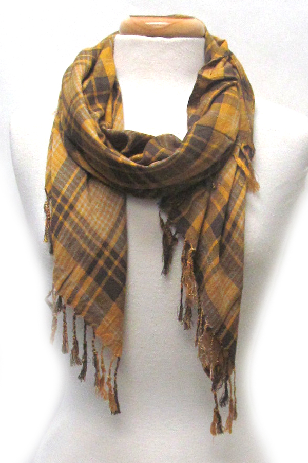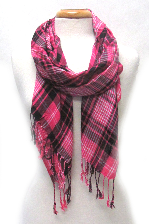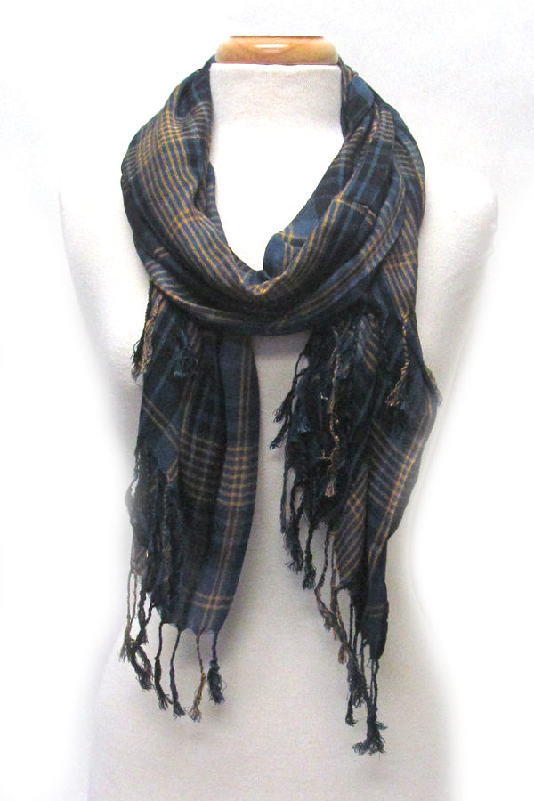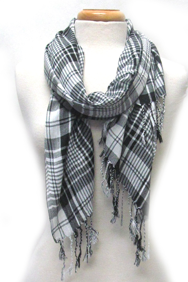 Plaid pattern and fringe scarf