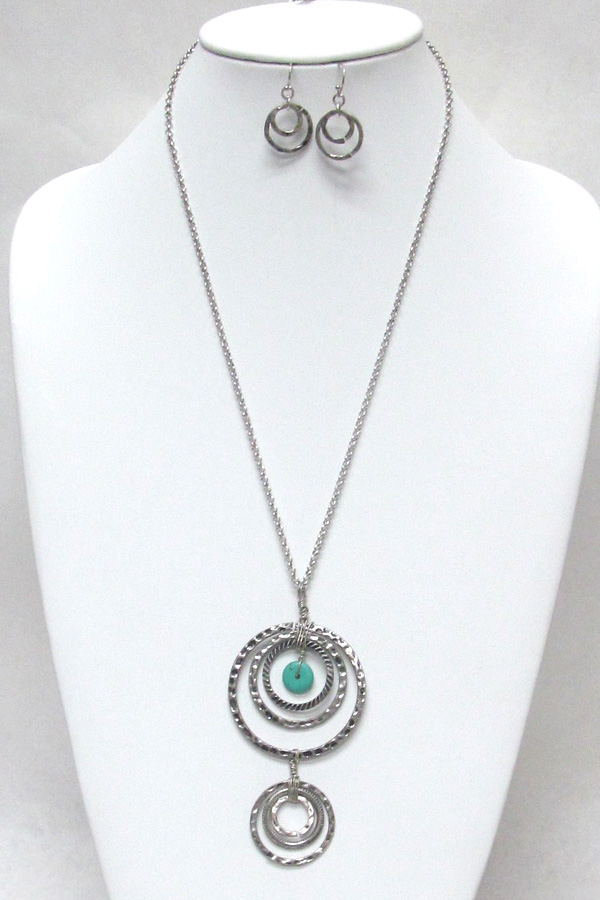 WHOLESALE TEXTURED MULTI RING DROP LONG NECKLACE SET 418069