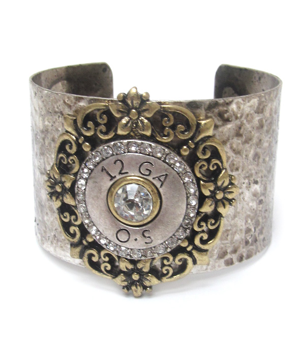 Crystal and metal filigree vintage bullet metal bangle bracelet