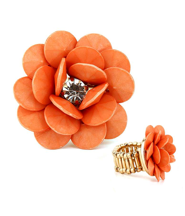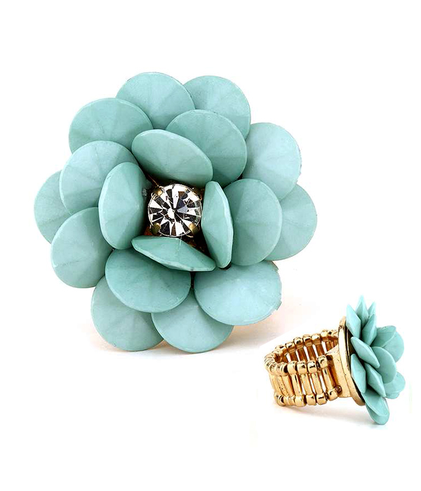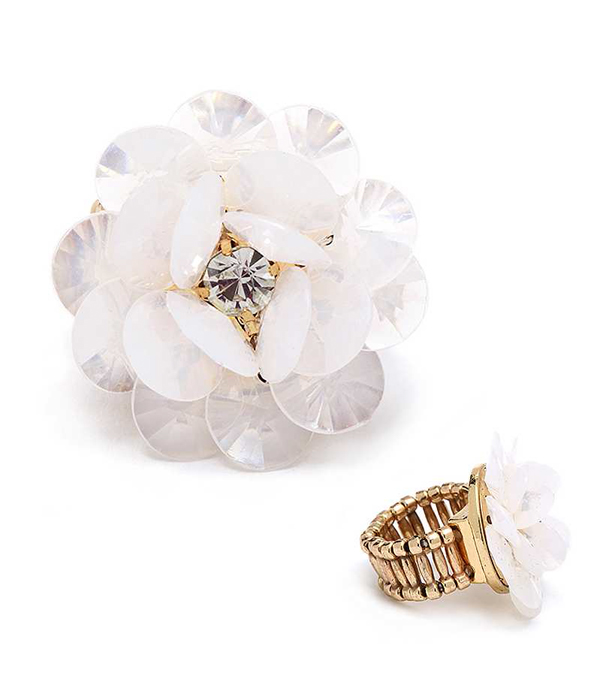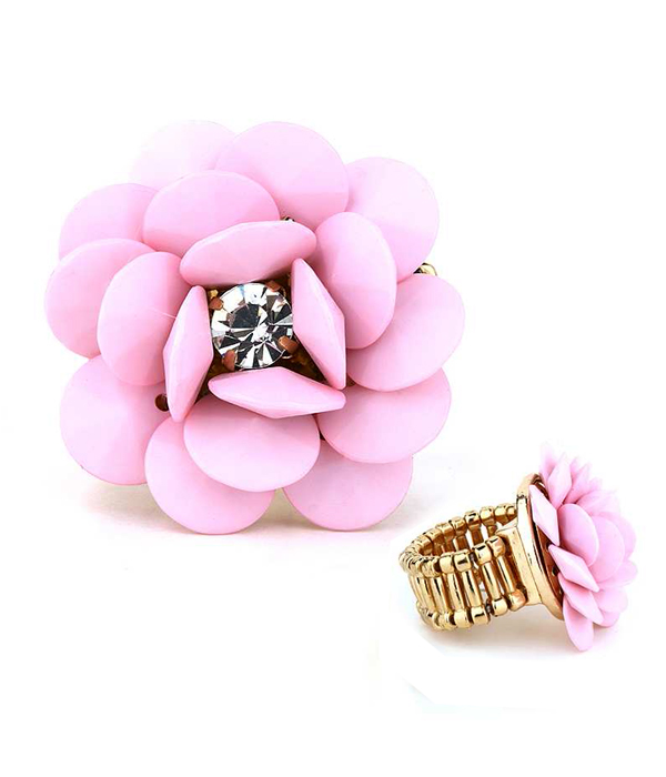 WHOLESALE CRYSTAL CENTER CAMELLIA FLOWER STRETCH RING 418419