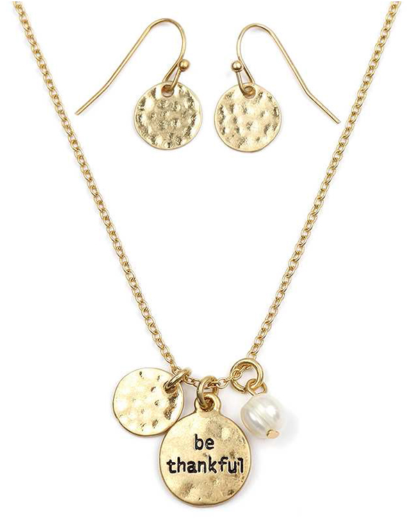 WHOLESALE INSPIRATION MESSAGE DISK NECKLACE SET - BE THANKFUL 418449