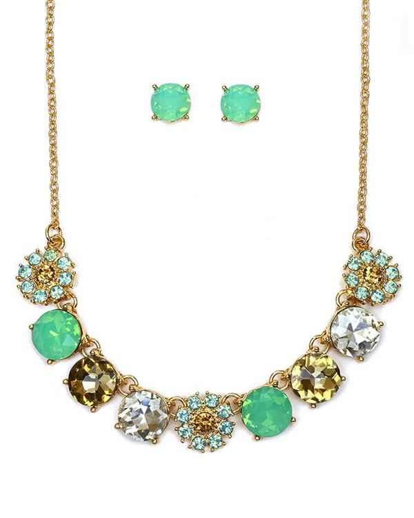 WHOLESALE CRYSTAL FLOWER LINK NECKLACE SET 419203