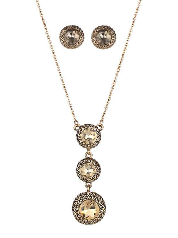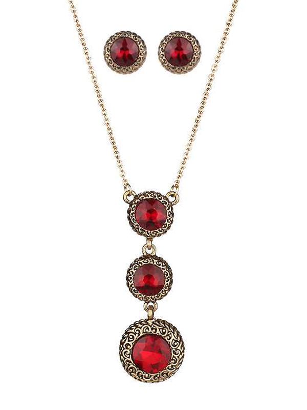 WHOLESALE FACET GLASS AND METAL FILIGREE LINK DROP NECKLACE SET 419403