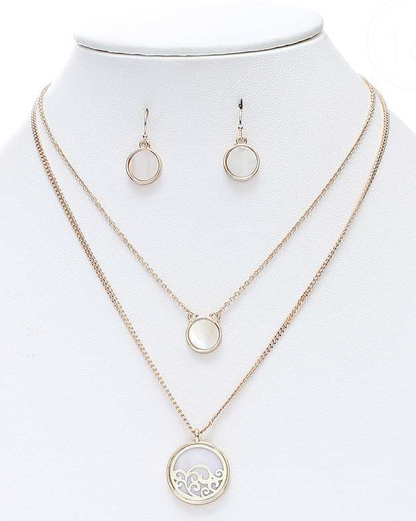 WHOLESALE OCEAN WAVE AND MOP DISK DOUBLE LAYER NECKLACE SET 419451