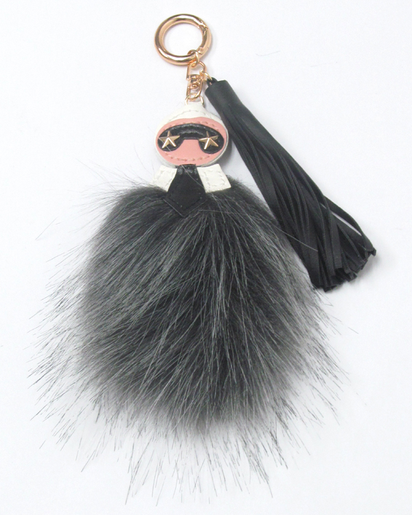 Designer style fur and tassel key chain